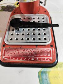 Macchina per caffè espresso mcrocbimbali. Utilizzabile soprattutto per esposizione anche in ambienti come bar e pub. - Design iconico rosso e argento. - Manico nero per l'erogazione. - Base con griglia metallica.