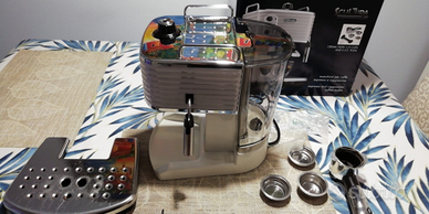 Vendo poiché c'è stata regalata una nuova macchina, Macchina caffè espresso Delonghi scultura. Usata per meno di 6 mesi, accende ma non eroga il caffè, probabilmente ha bisogno della pulizia con il decalcificante ma non abbiamo neanche provato. Completa di confezione originale e tutti gli accessori. Bicchierino da una tazzina, da due tazzine e per cialda. Utilizzo con caffè in polvere o cialda. Scalda tazze sopra la macchina, cucchiaino misurino/dosatore, 3 bicchieri da braccetto, un braccio, contenitore capiente dell'acqua e corpo macchina. Fin quando l'abbiamo usata, anche con caffè economico , erogava un caffè cremosissimo e migliore di macchine da 600 euro. Prezzo un po trattabile nonostante sia nuova, ma poiché non eroga caffè.... Ritiro gratuito a carico del compratore ad Asti o possibilità di spedizione tracciabile. La spedizione solitamente avviene entro 24 ore. Per info, lasciate un messaggio qui o tramite Whatsapp al 3458186994. Massima serietà, precisione ed educazione, spedizioni rapide ed imballi a prova di corriere.