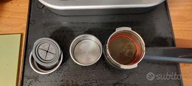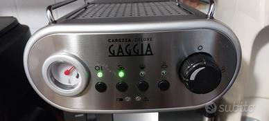 Macchina caffè espresso gaggia carezza delux con portafiltro a 2 tazze 1 tazza e porta cialde in carta.con questa macchinetta puoi usare sia caffè in polvere che le cialde in carta di qualsiasi marca. Fa' ottimi cappuccini