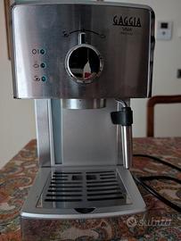 GAGGIA viva prestige RI8437/11, Macchina da Caffè Espresso Manuale, Potenza 1025 Watt Capacità 1.25 Litri. Pannarello in acciaio inox per montare il latte. Finiture cromate e acciaio inox. Possibilità di utilizzare le cialde tramite accessorio incluso. Completa di tutto. Ottime condizioni, già pulita e pronta all'uso.