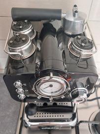 È adatta sia a caffè macinato sia a cialde monodose E.S.E. 55mm. Inoltre, puoi preparare due caffè contemporaneamente grazie al suo braccio con doppia uscita e cappuccini e frappè grazie al suo vaporizzatore, orientabile.
