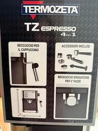 vendo macchinetta caffè a cialde, 4 in 1 marca TERMOZETA con accessri inculusi. utilizzata due volte, in ottime condizioni con scatolo originale.