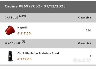 Macchina Nespresso CITIZ PLATINUM appena comprata e utilizzata per 15 giorni. Color argento. La vendiamo perché ne abbiamo ricevuta un’altra in regalo per Natale.