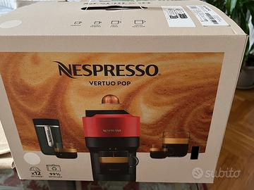 Macchina caffe Nespresso Vertuo Pop white, con scatola caffè.