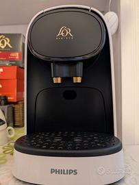 vendo macchina caffè compatibile con capsule Nespresso oltre che con capsule più grandi, prodotte dalla l'or, per ottenere due espressi contemporaneamente. Il caffè esce da due ugelli quindi si possono mettere due tazzine risparmiando tempo e costo per singolo caffè. Usata sempre con acqua leggera da bottiglia e non da rubinetto avente troppo calcare perfettamente funzionante. preferibile acquisto di persona per mancanza scatola originale, comunque verrà imballata accuratamente nell'eventuale spedizione. La macchina è venduta nuova con indicazioni delle caratteristiche sul sito della l'or.