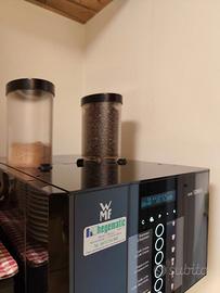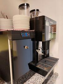 La macchina ha due contenitori separati per i chicchi di caffè (con relativo macinino) e per la cioccolata in polvere. E' inoltre dotata di frigo per il latte da 3,5 lt. dal quale la macchina attinge direttamente per creare la schiuma per caffè macchiato, cappuccino, latte macchiato, schiuma di latte e latte ciock.
