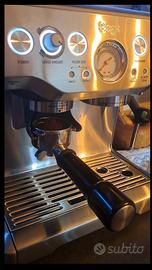 Vendo macchina caffè Sage the barista express. Macchina semiprofessionale acquistata quasi un anno fa, quindi ancora in garanzia. Dotata di macinacaffe incluso ,erogatore acqua ed erogatore vapore per montare il latte. Brick montalatte con termometro e vari filtri per utilizzare diversi tipi di caffè.