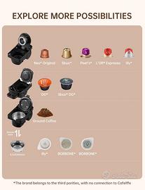 Macchina caffè a capsule 4-in-1 caldo & freddo espresso compatibile con per Nec* Original-, DG*-, ESE-pad e polvere di caffè rapida preparazione 4-in-1 Oltre le Capsule Base Sconfiggi il caldo con il caffè freddo istantaneo 19 Bar Pro + Maestria della Pre-Infusione Personalizza le tazze da caffè Autopulizia e decalcificazione