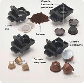 Vendo questa macchina da caffé nuova, mai stata aperta come si puo vedere dal sigillo imposto sulla scatola. È compatibile con capsule Nespresso, Dolcegusto e Lavazza a Modo mio; cialde e polvere. C’e un cassetto per ogni tipo di capsula/cialda/polvere.