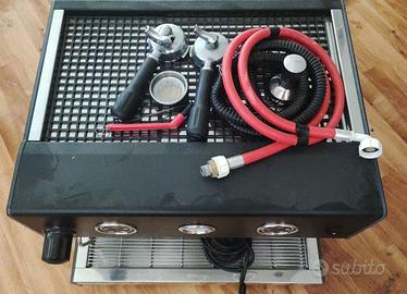 Vendo n. 1 Macchina Caffè Semip. con le seguenti caratteritiche: Caldaia da 3 l; Tanica acqua da 5l (senza sensore acqua); Erogazione vapore tramite lancia; Erogazione acqua caldaia tramite lancia; Gruppi SMART; Pompe (1 per ogni gruppo + 1 per carico caldaia); Versione Elettronica con 4 dosi programmabili e 1 manuale (caffè corto, caffè lungo, caffè doppio corto, caffè doppio lungo, continuo); Manometro controllo pressione in caldaia; Air Break e sensore mancanza acqua (solo versione rete idrica); Possibilità di preinfusione; Ampio piano per tazzine; Griglia filo massima pulizia; Fianchi e logo illuminati; Vasca raccolta acque sfilabile frontalmente con predisposizione per scarico in rete; Braccetti portafiltro intercambiabili con possibilità di erogazione capsule, cialde e macinato