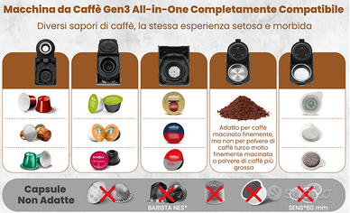 Macchina da Caffè CAPXSNOB Cialde 5in1 per Nespresso Originali, Dolce Gusto, Lavazza A Modo Mio, ESE 44 Cialde e Caffè Macinato, 20 Bar, 1450W, Display LED, Acqua Regolabili 7 Livelli .