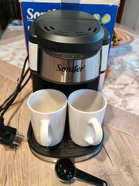 Macchina da caffè goccia elettrica Sonifer, può preparare 2 tazze, capacità 240ml, include 2 tazze in ceramica, interruttore con spia luminosa, filtro e portafiltro rimovibili e lavabili, piedini antiscivolo