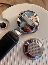 Macchina Espresso De'Longhi "Bar Italia" - anni 2000. Classico e Funzionante! 🇮🇹 Vendo Macchina da Caffè Espresso De'Longhi modello "Bar Italia". Questo modello classico è perfetto per chi ama l'autentico espresso italiano e cerca una macchina affidabile e compatta senza la complessità dei modelli moderni. Un vero pezzo iconico De'Longhi. ### Caratteristiche principali: * Modello: De'Longhi "Bar Italia" (Colore bianco/crema). * Preparazione Espresso: Dotata di portafiltro e filtri (inclusi) per caffè macinato (o cialde ESE, a seconda del filtro). * Funzione Vapore: Include la lancia vapore laterale per montare il latte e preparare cremosi cappuccino, latte macchiato o scaldare bevande. * Condizioni: Usata e perfettamente funzionante. Presenta segni di normale utilizzo e del tempo (visibili nelle foto, in particolare sul portafiltro e scocca), che ne attestano la storicità e robustezza. * Accessori: Portafiltro completo e filtri vari (come in foto). Ideale per un acquisto economico e tradizionale per la tua pausa caffè di qualità a casa.