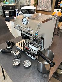 Macchina semi-professionale con macinacaffè integrato, ideale per preparare espresso, cappuccino e altre bevande come al bar direttamente a casa.