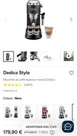 De’Longhi Dedica Style – Perfetto Macchina da Caffè Espresso, Compatibile con Cialde ESE, Montalatte Manuale per Cappuccino, Pannello di Controllo con Pulsanti, Larghezza 15 cm