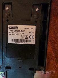 Macchina da caffè DeLonghi EN265.BAE per capsule Nespresso. Aeroccino Nespresso, il contenitore cilindrico a dx per il latte, NON funzionante (si consegna, comunque insieme alla macchina. Funzionante, invece, il reparto capsule caffè e il comando