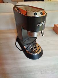 Come da titolo vendo macchina da caffè marca De Longhi, modello Dedica Style. La macchina è funzionante, l'unico difetto si riscontra nella "manopola" che ogni tanto si incastra (difetto visibile nella penultima foto, cioè il gancino in alto all'interno della manopola che risulta rotto). Presente anche il libretto delle istruzioni. Usata comunque quotidianamente, vendo solo per passaggio a macchinetta di fascia più alta.