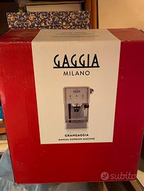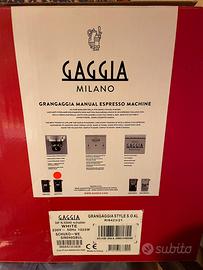 Macchina da caffè espresso Gran Gaggia Style, pari al nuovo, usata due/tre volte, vendo per non utilizzo, completa di scatola e istruzioni, si può usare sia con polvere che con cialde in tessuto, ha anche il cappuccinatore.