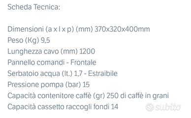 Vendo macchina da caffè come da foto. Usata pochissimo e ben tenuta. Scheda tecnica in foto.