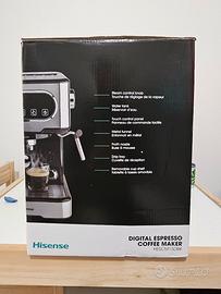 Vendo macchina da caffè Hisense con montalatte, può essere usata sia con cialde che con macinato. Ancora sigillata acquistata il 18/10/25.