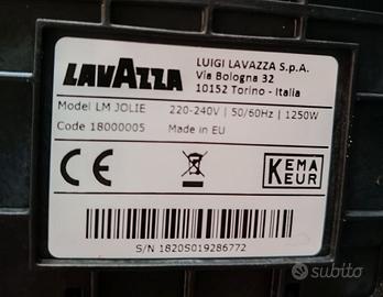 Articolo come da immagini, colore bianco, potenza 1250 W, pressione pompa 10 bar, serbatoio acqua removibile 0,6 L, capienza cassetto raccoglitore max 5 capsule usate, componenti removibili lavabili in lavastoviglie o a mano, sistema di risparmio energetico con spegnimento automatico dopo 9 minuti. Utilizza capsule Lavazza A Modo Mio o compatibili. Il prodotto è stato appena decalcificato. MANCA il coperchio del serbatoio (Foto 5), reperibile come ricambio, insieme al serbatoio stesso. Ritiro in zona Montagnola, CAP 00147. LA VENDITA AL MOMENTO É SOSPESA.