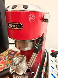 Splendida macchina da caffè espresso, per cialde e caffè in polvere, del marchio De Longhi. Ha anche il supporto per il cappuccino e montalatte. Esteticamente bellissima, colore rosso che arreda. In ottime condizioni, usata pochissime volte.