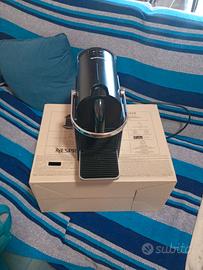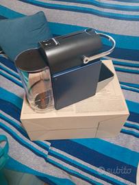 bellissima macchina da caffè Nespresso PIXIE, con rifiniture laterali in alluminio color blu, elegantissima ,prepara automaticamente caffè lungo oppure espresso, buonissimi caffè di vari gusti e aromatizzati al gusto Vaniglia, cioccolato, pistacchio, ecc. dopo 2 minuti di inattività si spegne automaticamente, potenza della pompa di erogazione 19 bar, come nuova, perfetta, vero affare.