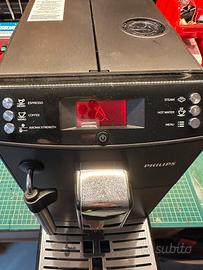 Macchina da caffè Philips con pannello comandi. - Pulsanti per Espresso, Caffè, Aroma Strength. - Pulsanti per Steam, Hot Water, Menu. - Display digitale. - Lancia vapore. - Design moderno. - con macina caffe incorporato