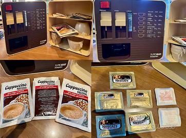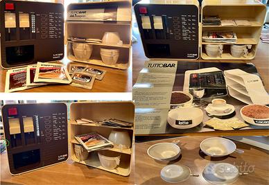 Completa della sua scatola originale anche se consumata dagli anni in magazzino considerando che oltre alla macchina, dell’epoca ci sono pure le Tazze Cappuccino,Tazzine Caffè ,e le varie Confezioni/Bustine di Nescafè Cappuccino, Nescafè Caffè ,Zucchero, che erano in dotazione nel 1980 ad oggi INTROVABILI nuove ,è un Must per amatori e collezionisti del genere.