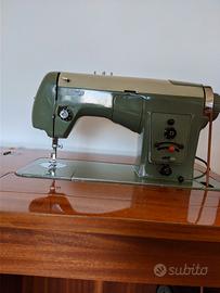 macchina da cucire a pedale Borletti 1102 con mobiletto in legno massello. Completa di manuale per l'uso e libretto dei ricami . Con filo elettrico per lampadina guida cucito. Perfettamente funzionante con corredo di spolette e rocchetti. Misure cm con mobile chiuso larghezza 57 profondità 45 altezza 80 . Con mobiletto aperto larghezza 114.