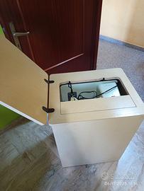 Macchina da cucire Singer con mobile, originariamente elettrica, è stata trasformata a funzionamento a pedale. Perfettamente funzionante ed in ottimo stato.