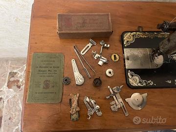 Macchina Singer antica del 1924 a libretto originale dell'istruzioni, inserti originali, mobiletto in legno in ottime condizioni. Macchina funzionante, ritiro a Villafranca Tirrena. Per visionarla contattami