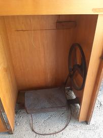 come in foto. Mobiletto richiudibile con dentro macchina da cucine Borletti con funzionamento a pedale e con presa di corrente. Oggetto non semplicemente da trovare in queste condizioni. Vendo così come è.
