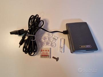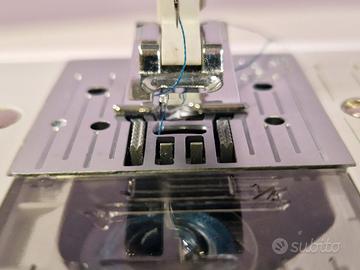 Macchina per cucire nuova mai usata solo esposta in negozio completa del suo pedale e accessori come da foto. In più è compreso nel prezzo anche il tavolino allungabase. La scatola di cartone contenente la macchina potrebbe essere leggermente rovinata.