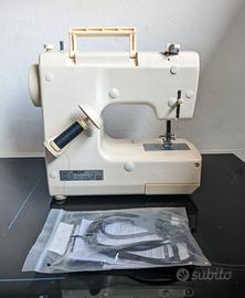 La macchina è usata, in buone condizioni e perfettamente funzionante. È stata utilizzata per lavori di cucito domestici e mantenuta pulita.