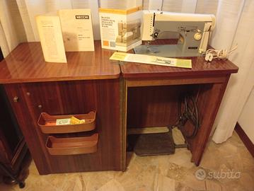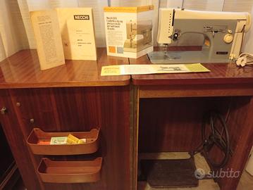 Macchina da cucire Necchi 503 degli anni 1960/65 con zig zag; a pedali e con predisposizione a motore. Completa di mobiletto e istruzioni. Ben funzionante.