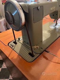 Vendo Macchina da cucire risalente agli anni '50, completo di mobiletto originale. Un vero pezzo da collezione, ideale per appassionati di antiquariato, collezionisti o per chi desidera un oggetto d'arredamento unico con una sua storia. La macchina funziona manualmente con il volano/pedale inclusi nel mobiletto. Il cavo di alimentazione è danneggiato e necessita di essere sostituito per l'uso a motore.