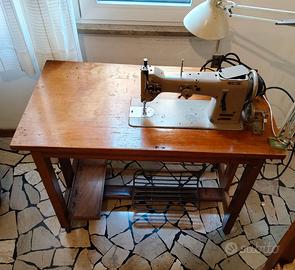 + banco da lavoro in legno con pedale in ferro e motore elettrico posizionato sotto il piano
