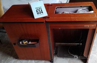 Perfettamente funzionante, completa di mobile in legno, accessori e libretto delle istruzioni. Con pedale elettrico o a mano. Conservata in ottimo stato.