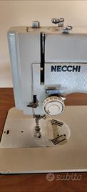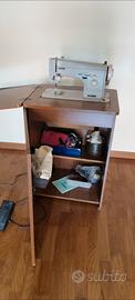 Macchina da cucire elettrica Necchi modello 546. Mobile contenitore in legno, completa ripiano interno e cassetto portaoggetti.