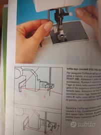 La macchina funziona ma si è rotto e perso il gancino dell’infila-ago (lettera R nella fotografia dal manuale d’uso).