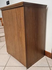 Macchina da cucire Singer 377 anni '70 completa di mobile dimensioni: altezza 77 cm, larghezza 53,5 cm, profondità 42 cm. Include funzionalità come il punto dritto e lo zig-zag. Disponibile con pedale di controllo. Revisionata di recente