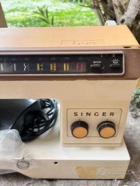 Singer Futura, una macchina da cucire prodotta a metà degli anni '70 che ha rappresentato un'importante evoluzione tecnologica per l'epoca. Ecco i dettagli principali di questo modello: Caratteristiche del Modello Design Innovativo: La serie Futura (come i modelli 900, 920 o 1000) è stata tra le prime a utilizzare componenti elettronici per la selezione dei punti, visibili nel pannello orizzontale superiore. Punti Integrati: A differenza dei modelli precedenti che richiedevano "camme" esterne, questa macchina permette di selezionare diversi punti (zig-zag, punti decorativi, asole) direttamente tramite i cursori sul pannello frontale. Sistema a Braccio Libero: Rimuovendo la parte anteriore della base (se presente), è possibile cucire facilmente parti tubolari come polsini e orli di pantaloni. Usata ma perfettamente funzionante, la macchina è stata testata di recente.