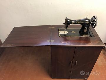 Vendo macchina da cucire Singer d'epoca con mobile. Macchina ben conservata e perfettamente funzionante. Qualche scheggiatura e qualche macchia/alone di umidità sul legno del mobile.