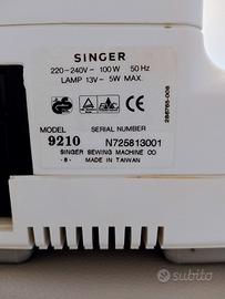Modello Vintage anni '90, allo stato attuale non funzionante a causa del Crochet rotto che, però, può essere sostituito, da un tecnico specializzato, rendendo la macchina nuovamente funzionante, in alternativa utile per pezzi di ricambio, dotata di valigetta in plastica, piedino e cavo elettrico, come da foto