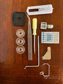 •Accessori inclusi: pedale, cavo di alimentazione, qualche piedino standard, libretto di istruzioni, spolette, pinzetta cercafili, cacciavite,