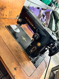 Macchina da cucire Singer a pedale piu motore elettrico originale. Completa di mobile a scomparsa.