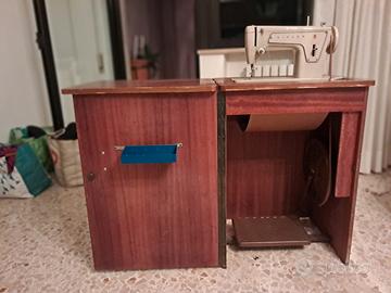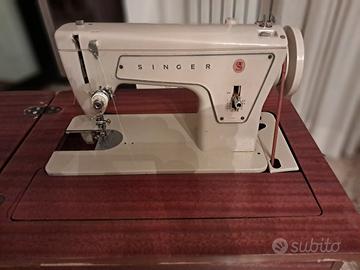 Vendo macchina da cucire Singer modello 239 in perfette condizioni estetiche e funzionante, completa del suo mobiletto originale in legno con vano porta accessori e pedale meccanico a cinghia.