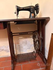 macchina da cucire d’epoca singer, macchina in buono stato, l’unico difetto è il collegamento non funzionante tra pedale e manovella, da sistemare