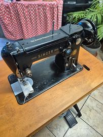 Vendesi bellissima macchina da cucire Singer d'epoca, completa del suo tavolo originale in legno e struttura in metallo nero.